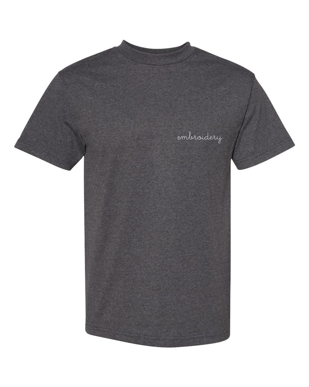 The Solid Shortsleeve T-Shirt is embroidered with your choice of text. A cotton tee designed for personalization and everyday wear.