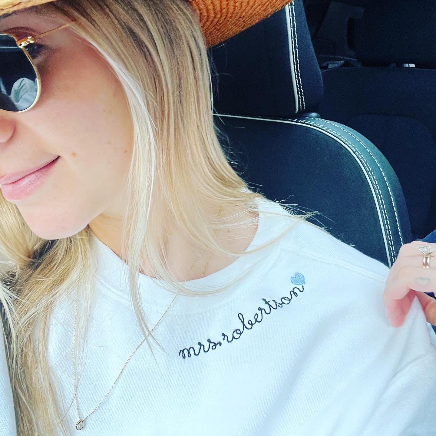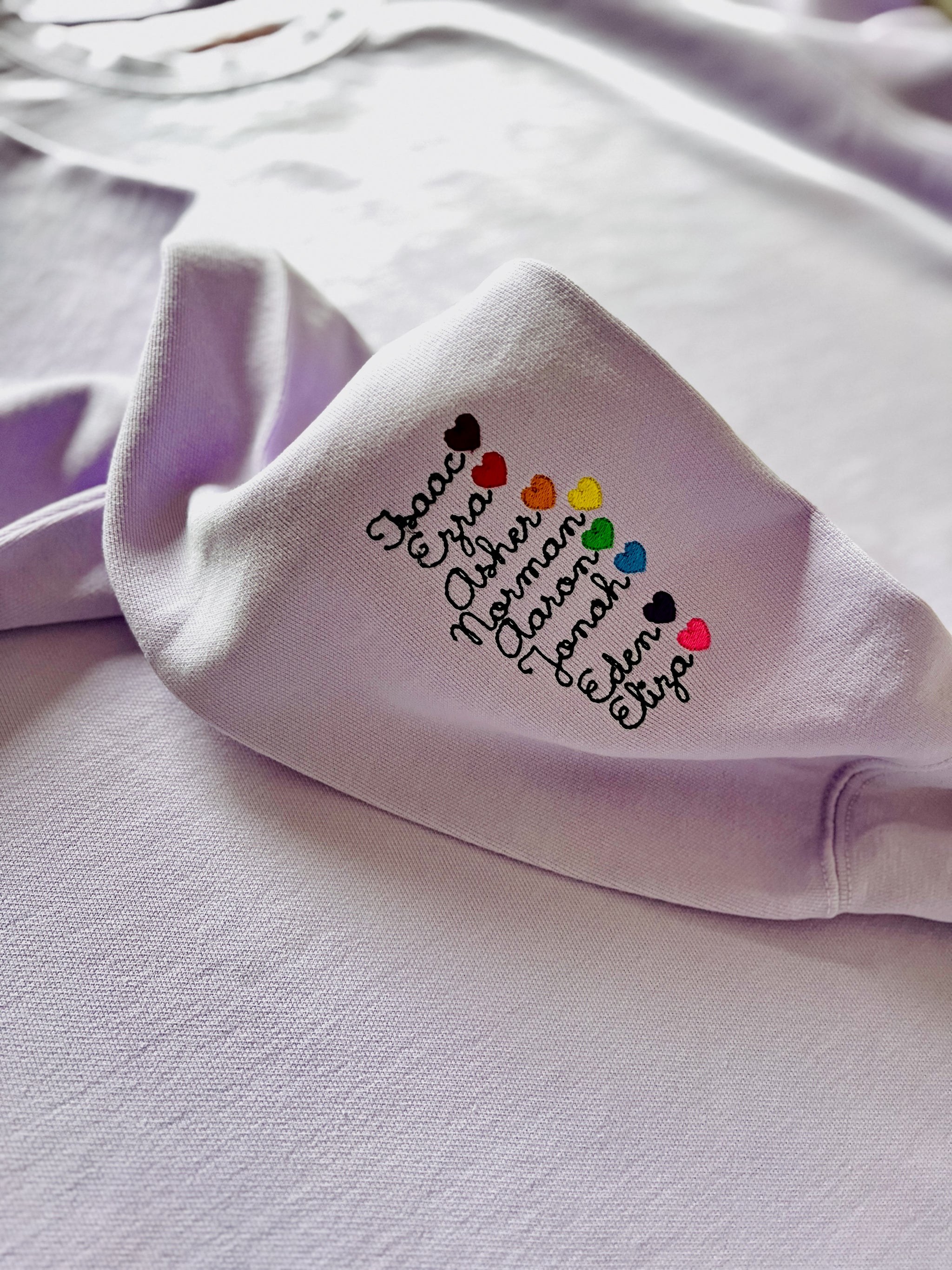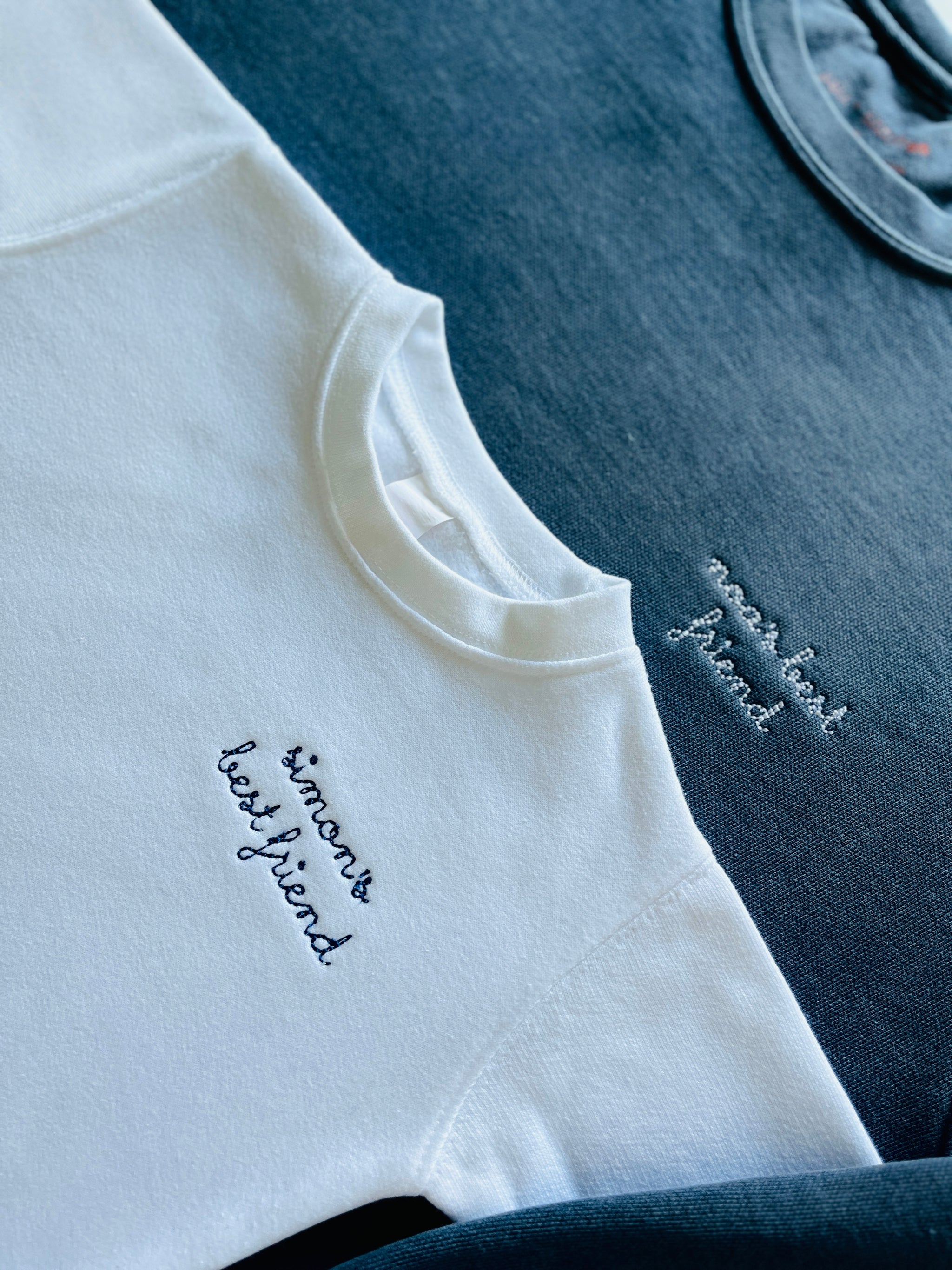 A vintage-inspired crewneck, customized your way. Add children’s or grandkids’ names to the sleeve, collar, or chest for a subtle, personal detail.