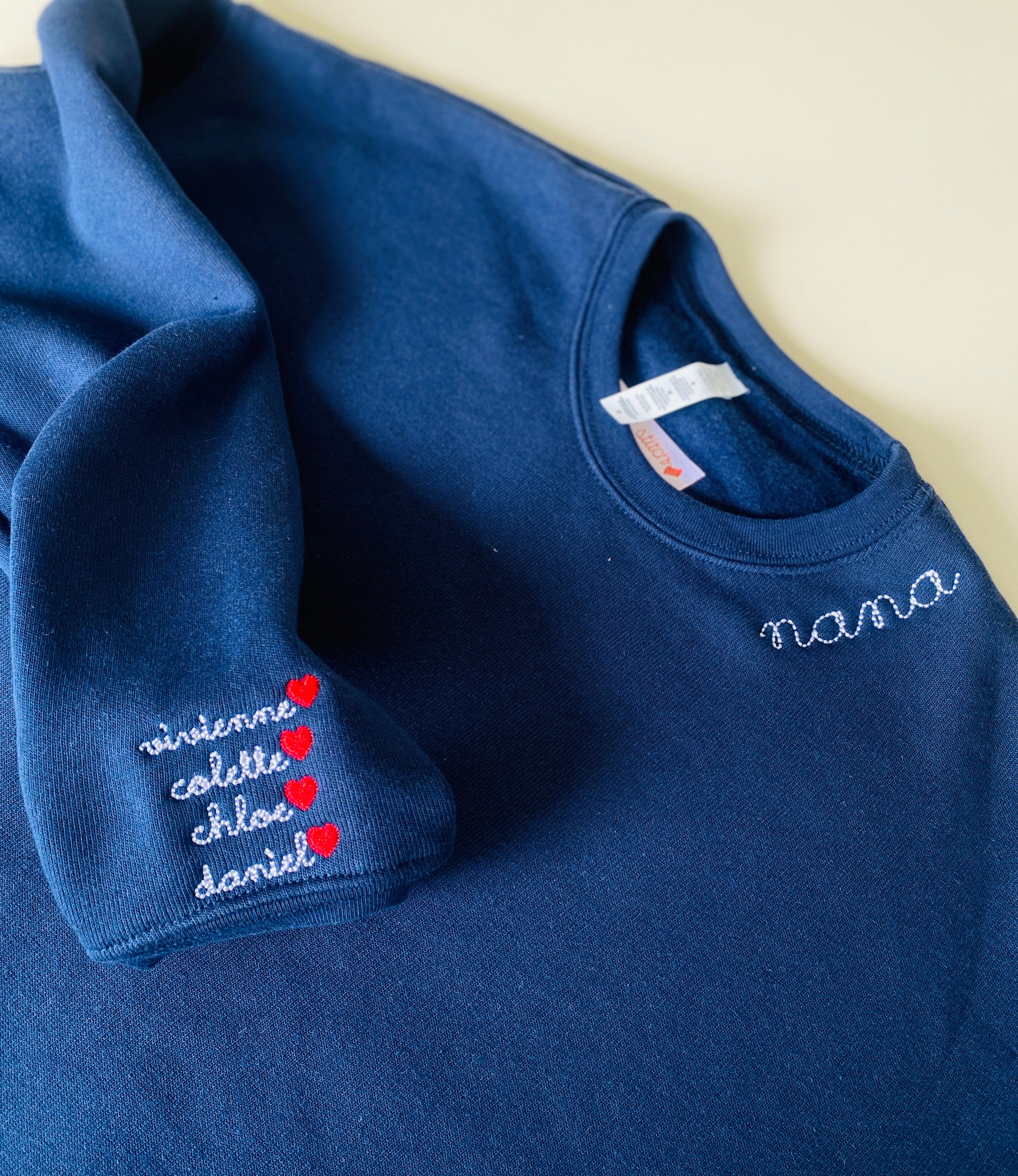 A cozy classic crewneck designed for personalization. Add names to the sleeve, collar, or chest for a modern embroidered detail that keeps it personal without being loud. A versatile gift for moms, dads, and grandparents — perfect for Mother’s Day, Father’s Day, or celebrating a new parent.